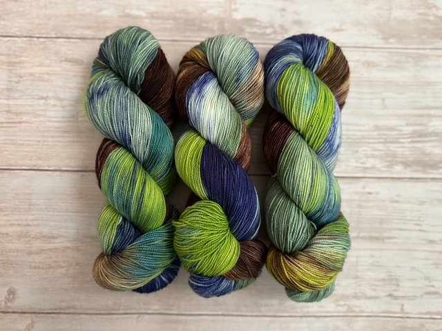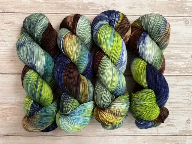 Inspired by the wild beauty of southern Patagonia, Calafate evokes the deep blues of glacier-fed lakes, the greens of windswept hills, and the navy shadows of distant mountains. This hand-dyed yarn captures the essence of El Calafate โ serene, rugged, and breathtakingly vivid.